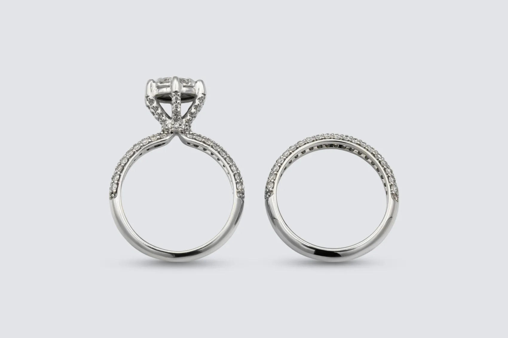 Every detail reflects CLB Jewellers’ dedication to exceptional craftsmanship, fine materials, and timeless design. Romantic and radiant, this diamond ring set is a perfect symbol of everlasting commitment, made to be treasured for a lifetime.