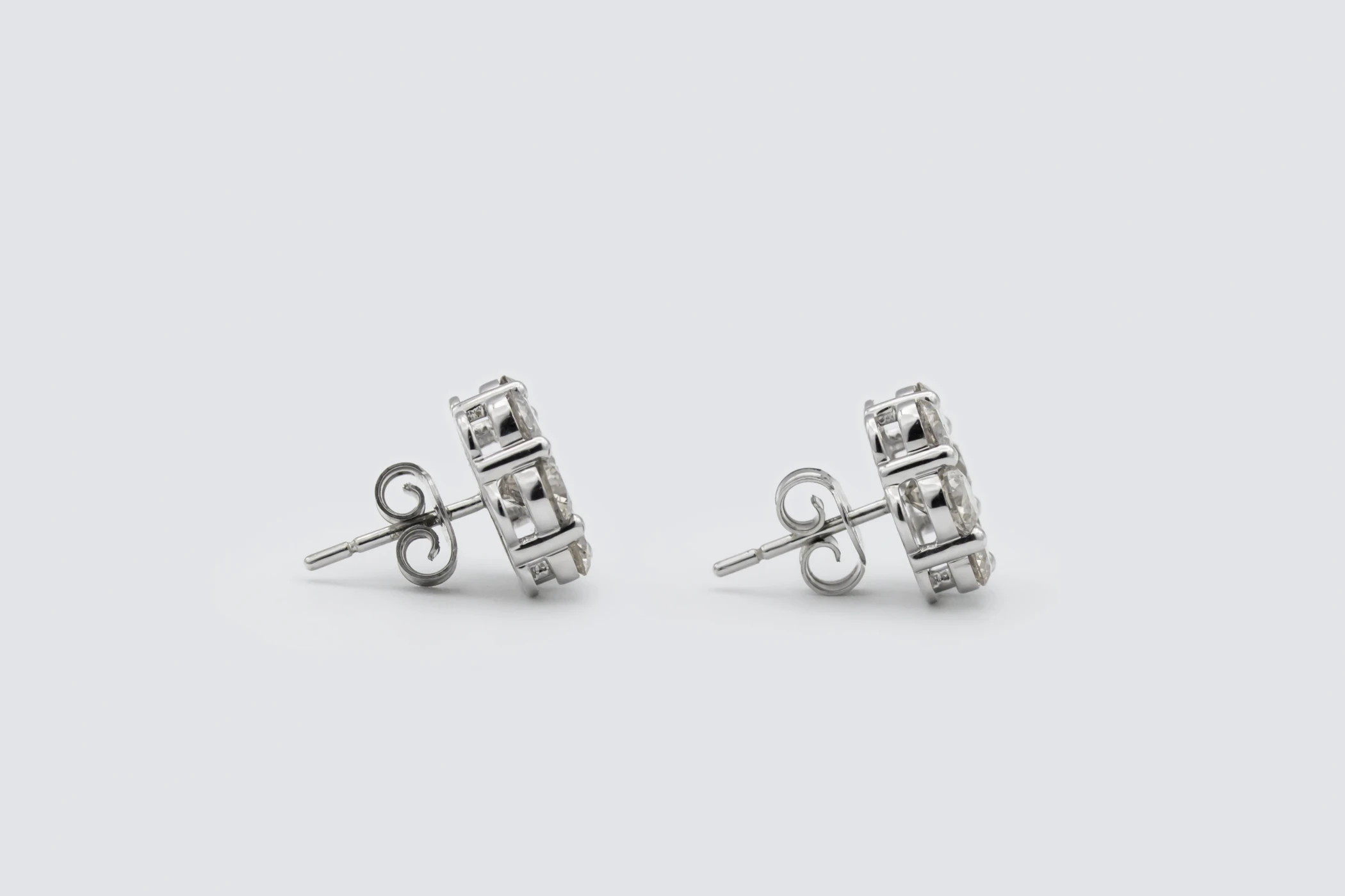 Radiant and refined, these 9ct white gold diamond flower stud earrings capture the beauty of timeless design with a touch of modern sparkle. Set with a total of 4.00 carats of natural brilliant-cut diamonds, each earring features an intricate flower motif symbolising grace and elegance.