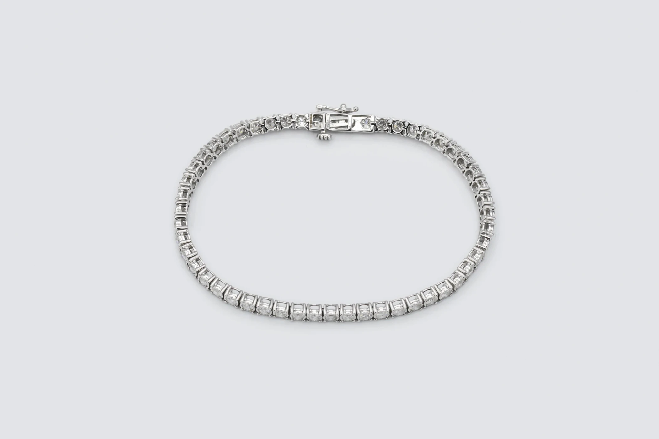 Elegant and timeless, this 9ct white gold diamond tennis bracelet radiates sophistication and understated luxury. Set with 3.53 carats of natural brilliant-cut diamonds, each 4mm stone is expertly claw set to enhance light reflection and create a continuous line of dazzling brilliance.