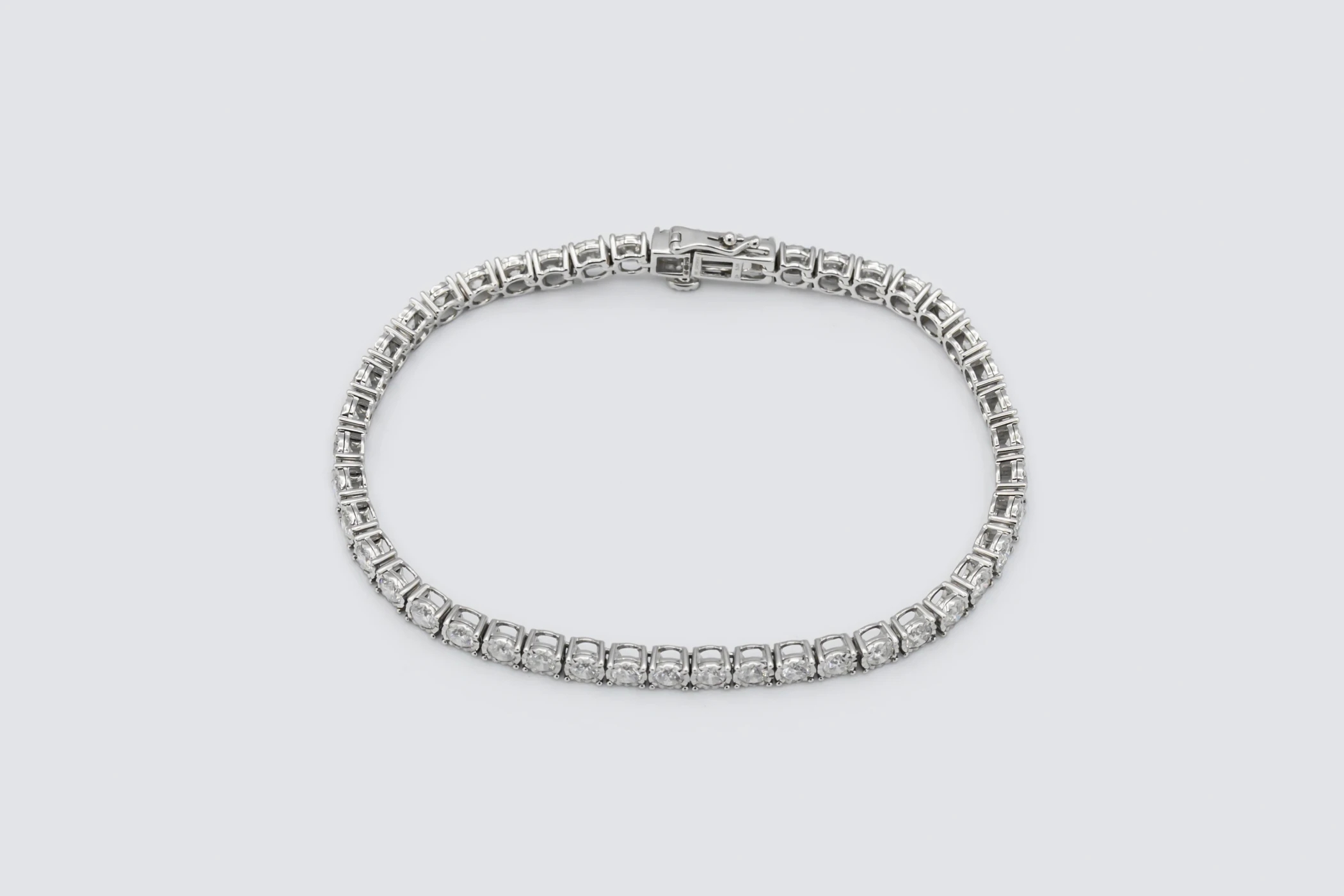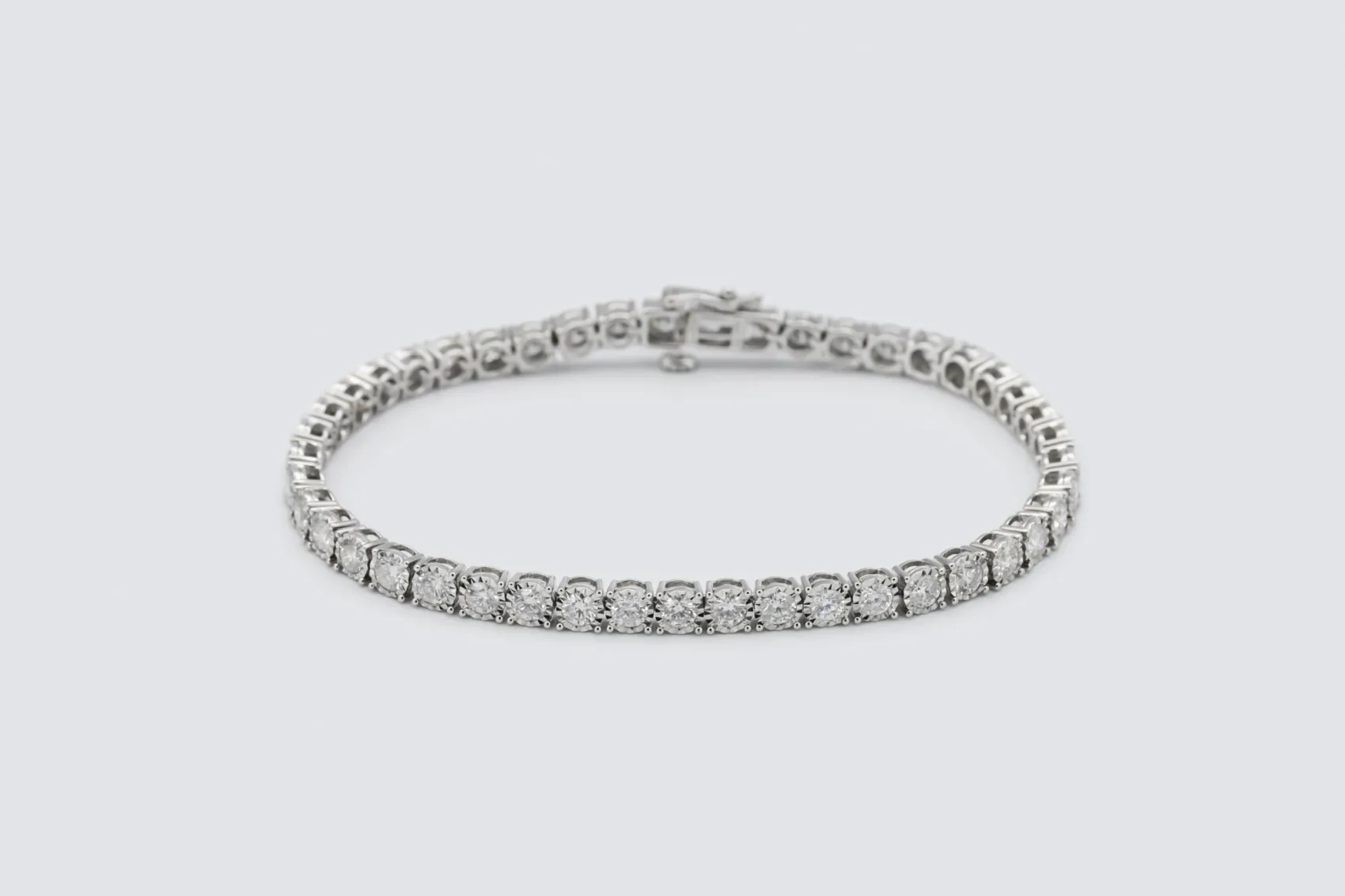 The perfectly matched diamonds form a seamless line of sparkle, beautifully complemented by the cool, polished lustre of white gold.