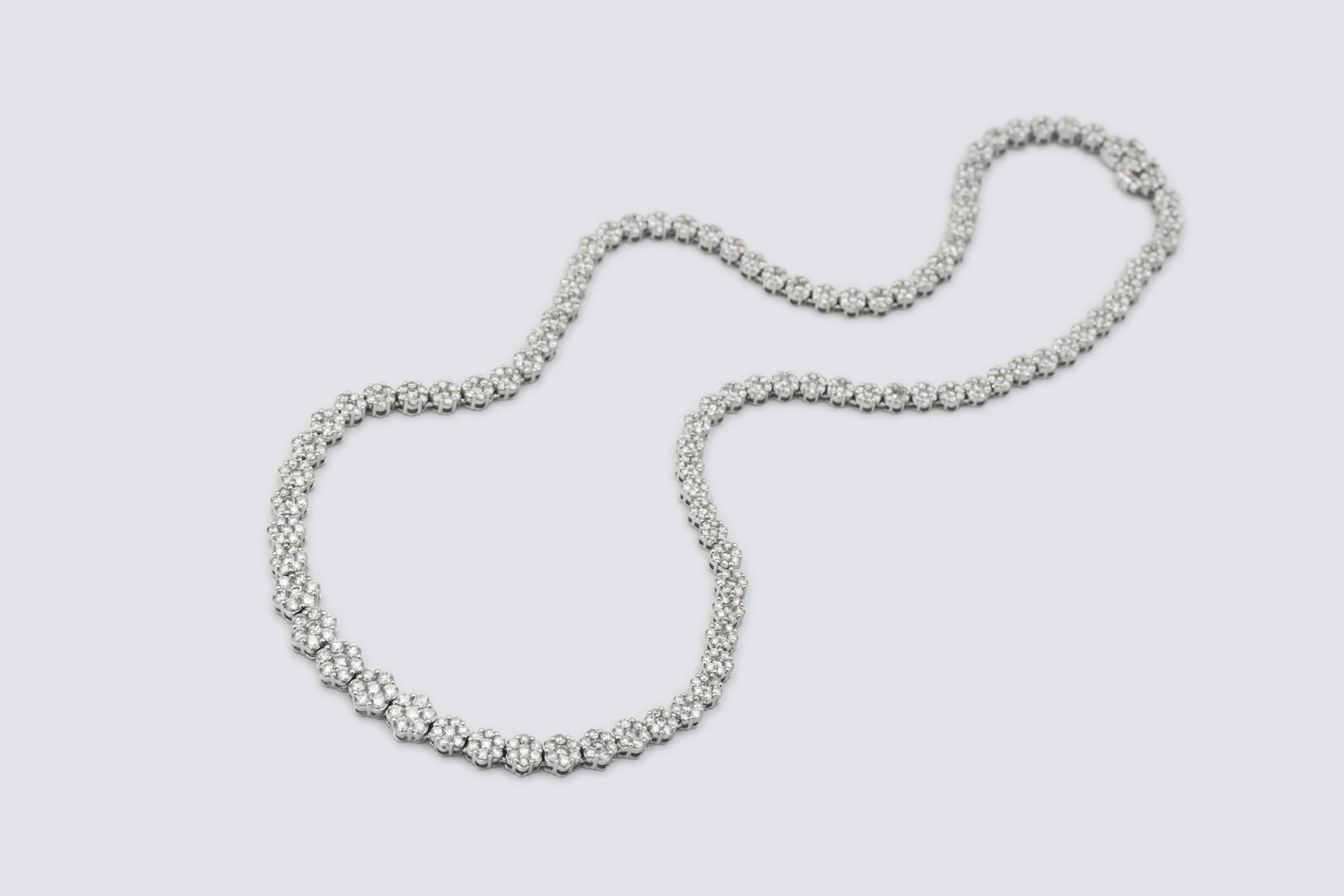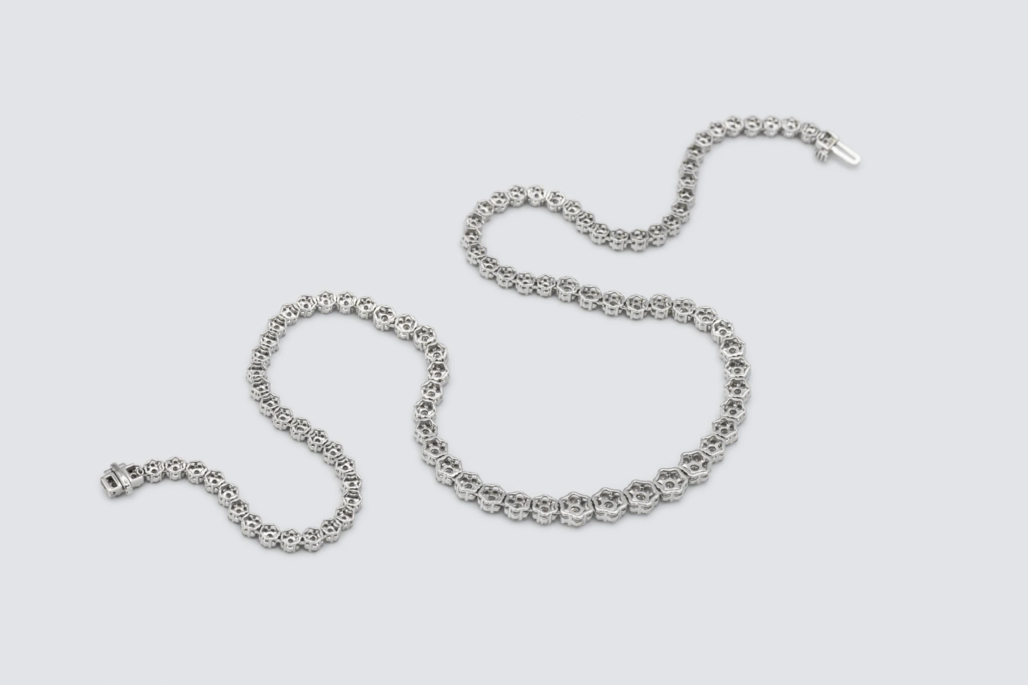 The combination of flower-set artistry, secure claw settings, and the polished 9ct white gold finish reflects CLB Jewellers’ dedication to craftsmanship, beauty, and exceptional quality. A truly distinctive piece, this diamond tennis necklace is designed to be treasured — a timeless celebration of femininity, brilliance, and refinement.