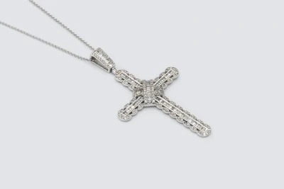 9ct White Gold Diamond Cross Pendant Necklace 2.15ct