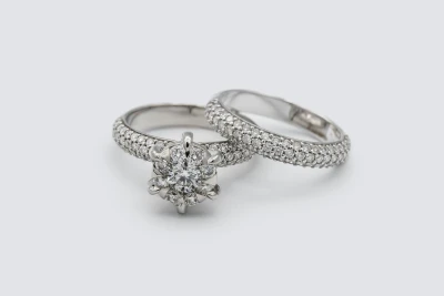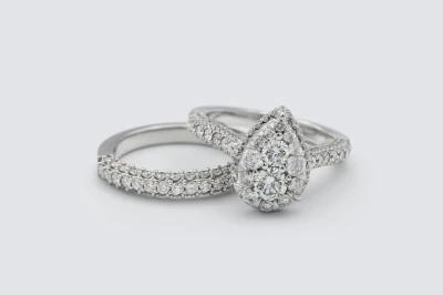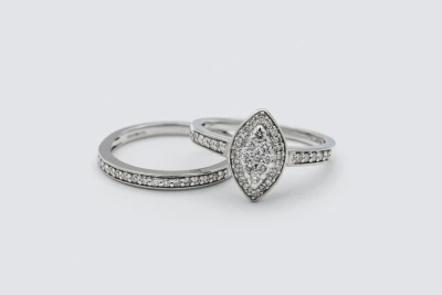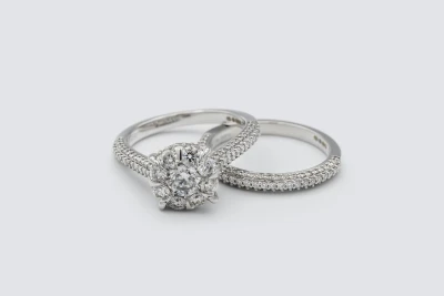 9ct White Gold Diamond Engagement Ring & Wedding Band Set