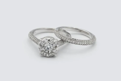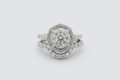 9ct White Gold Diamond Engagement Ring & Wedding Band Set 1.85ct