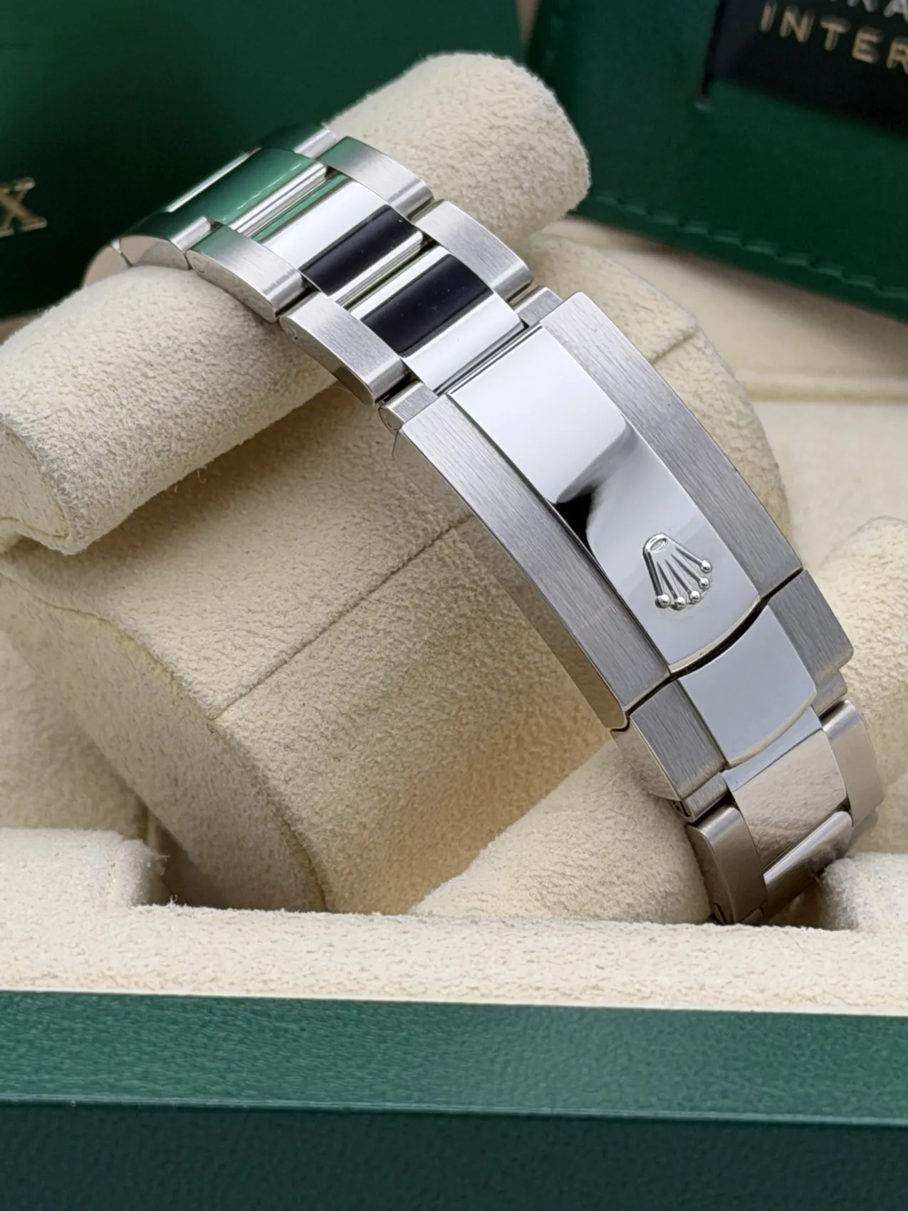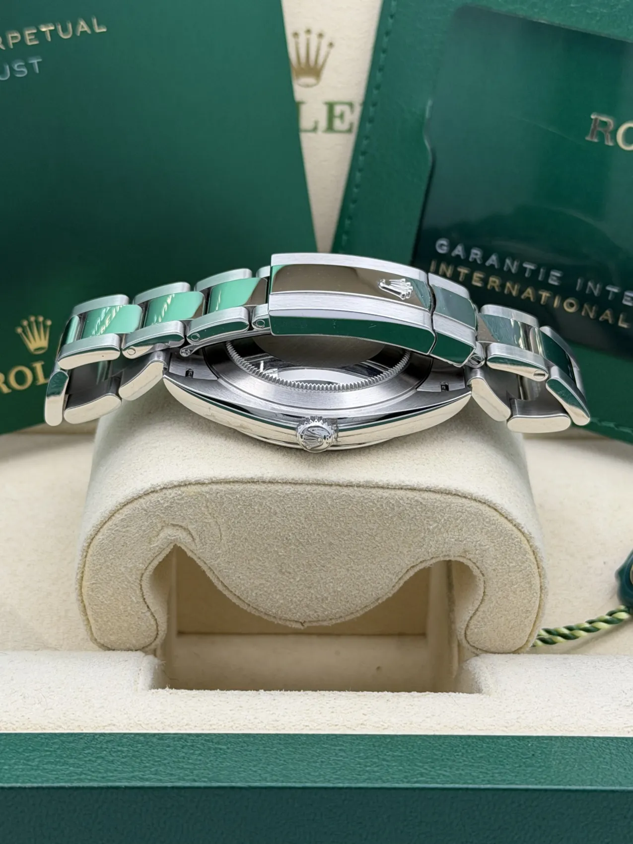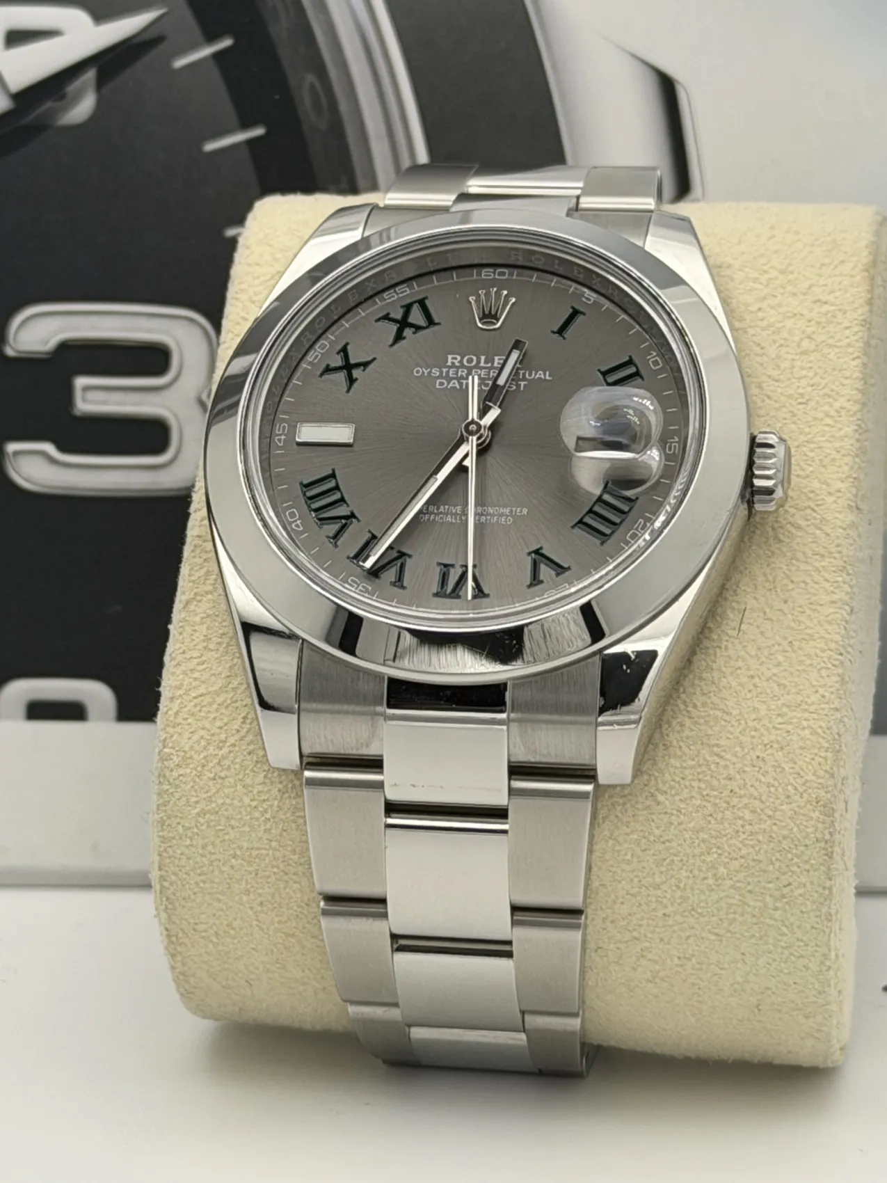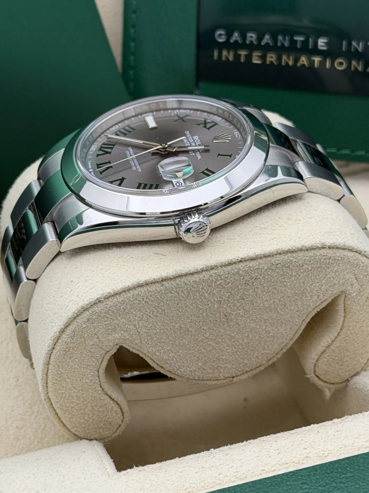 This Rolex Datejust 41 reference 126300 features a 41mm stainless steel case with a smooth bezel, the highly sought-after Wimbledon dial with green Roman numerals, and the robust stainless steel Oyster bracelet. Powered by Rolex’s automatic calibre 3235 movement, this 2023 model offers exceptional precision, a 70-hour power reserve, and the modern versatility that makes the Datejust one of Rolex’s most enduring and popular designs.