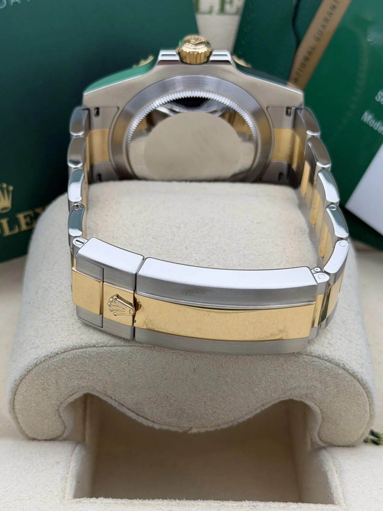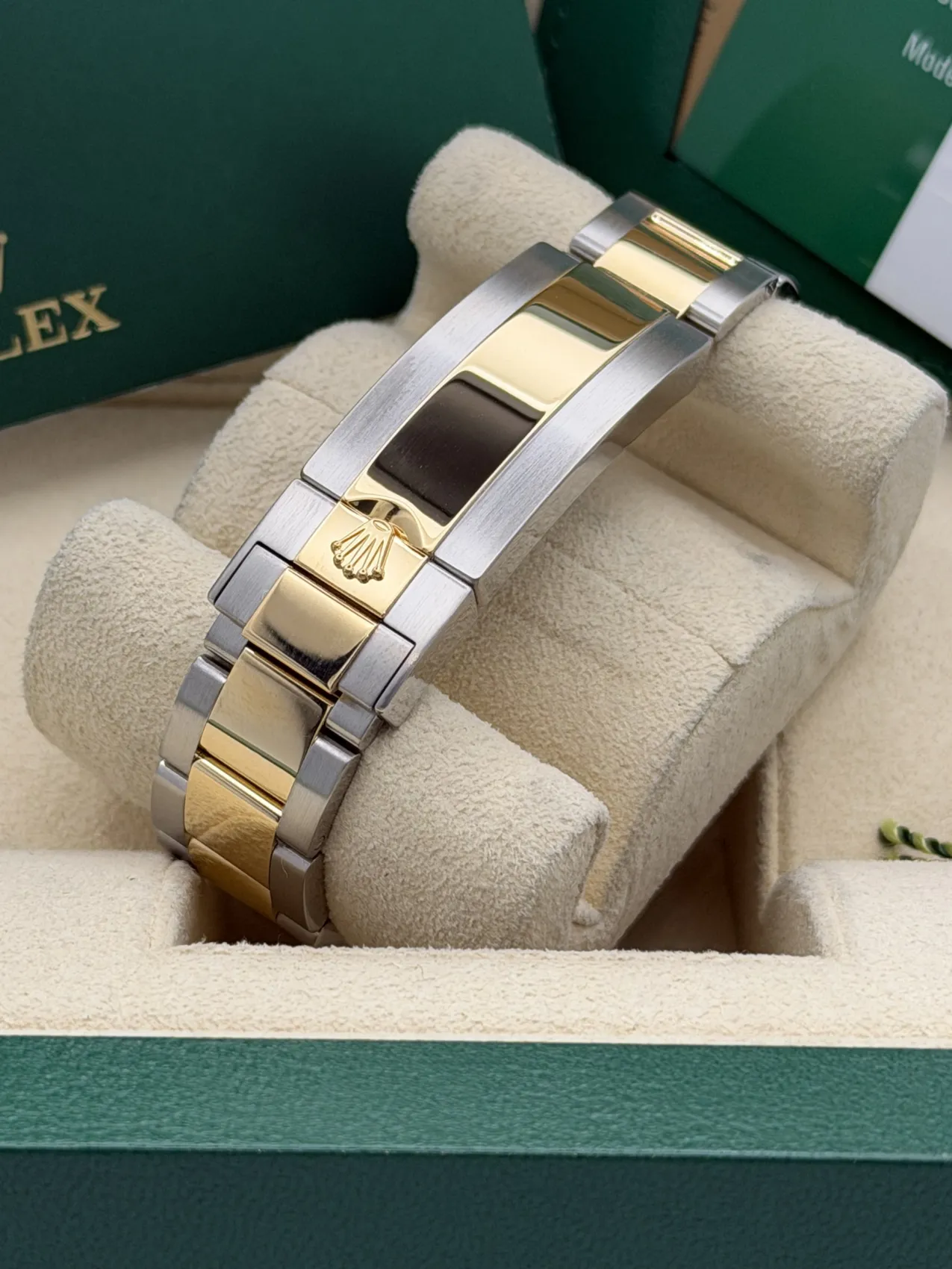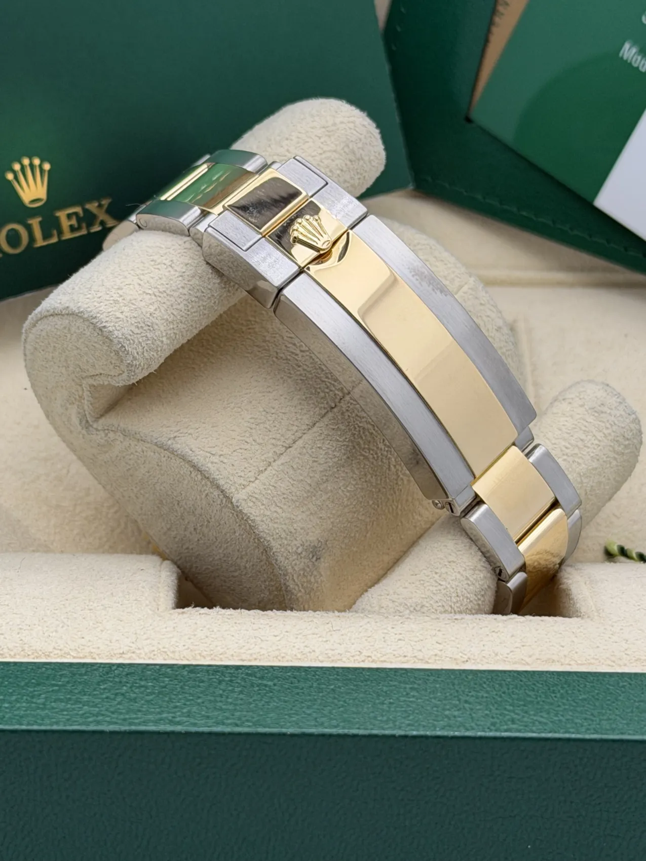 This Rolex Submariner Date features a stainless steel and yellow gold (Rolesor) case with a blue ceramic bezel, a matching blue dial, and the iconic Oyster bracelet, powered by Rolex’s automatic movement, offered in excellent condition.